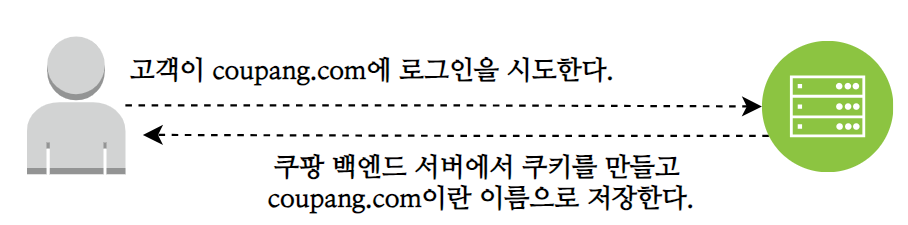 1. 쿠팡의 고객이 coupang.com에 로그인할 때 백엔드 서버에서는 브라우저에 저장할 쿠키를 줍니다.
