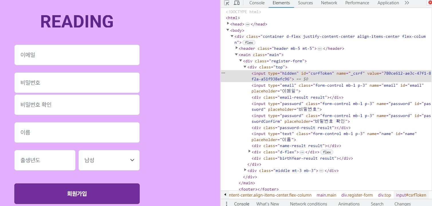 타임리프에서 랜더링 되면 위와 같이 value에 값이 찍힙니다. 토큰의 value가 맞는지 확인해보겠습니다.