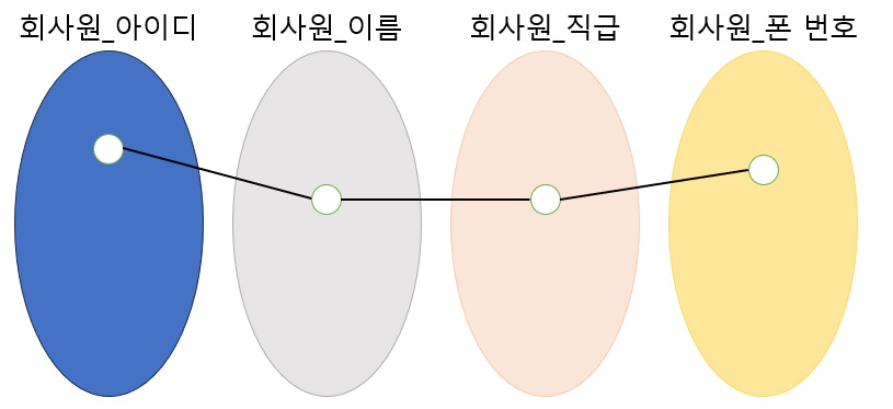 한 번 회사원 릴레이션을 예를 들어 릴레이션 데이터 모델을 보겠습니다.