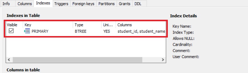 또 글에서 많이 벗어나는 거 같아 자세히 언급하지 않았지만, 기본 키는 기본적으로 데이터베이스에서 인덱스처리합니다. 워크밴치에서 확인해볼까요?